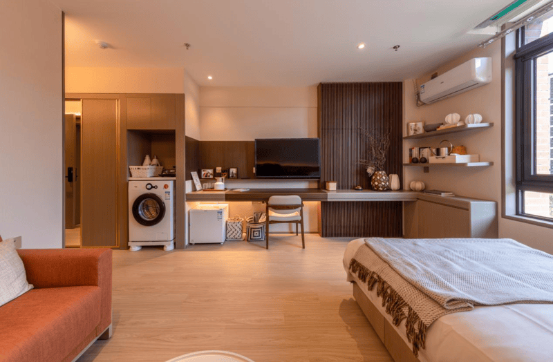 精准定位核心需求,随园构建了覆盖全生命周期的居住体系。7栋专属楼宇分为自理楼与护理楼,严格依据长者健康状况分区管理,既保障活力长者的独立生活空间,又为半失能、失能卧床、认知障碍等需要照护的长者提供专属区域。社区以“适老化”为核心设计理念,全屋无高差、导圆角及连续支撑界面的细节处理,从源头降低行动风险;20余个功能空间科学规划,阅读视听、棋牌运动、书画音律、舞蹈瑜伽等区域满足多元兴趣需求,院线级影视放映厅搭配芝华仕沙发,将品质享受融入日常;茶饮水吧、休闲会客与阳光私宴厅,则兼顾社交与家庭欢聚需求,周边三大公园环绕,为长者提供天然休闲氧吧。